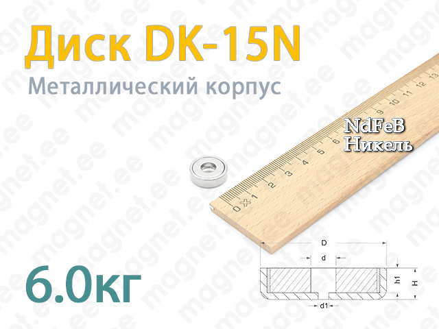 Mагнит с отверстием Диск DK-15N, Металлический корпус