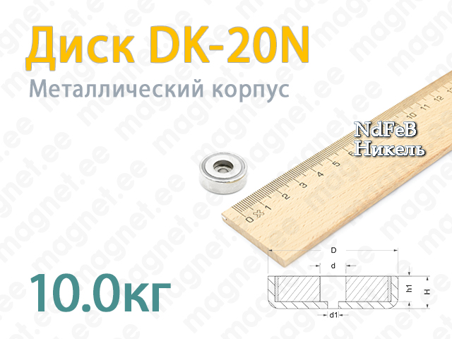 Mагнит с отверстием Диск DK-20N, Металлический корпус
